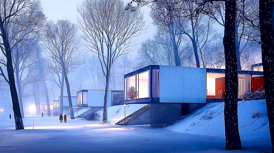 Grundet den gentagne størrelse af stokkene er det billigt at opføre og enkelt at udvide.